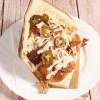 Alle Taschengerichte werden mit Tzatziki, Cocktailsauce, Eisbergsalat, Tomaten, Gurken, Zwiebeln und Krautsalat zubereitet.